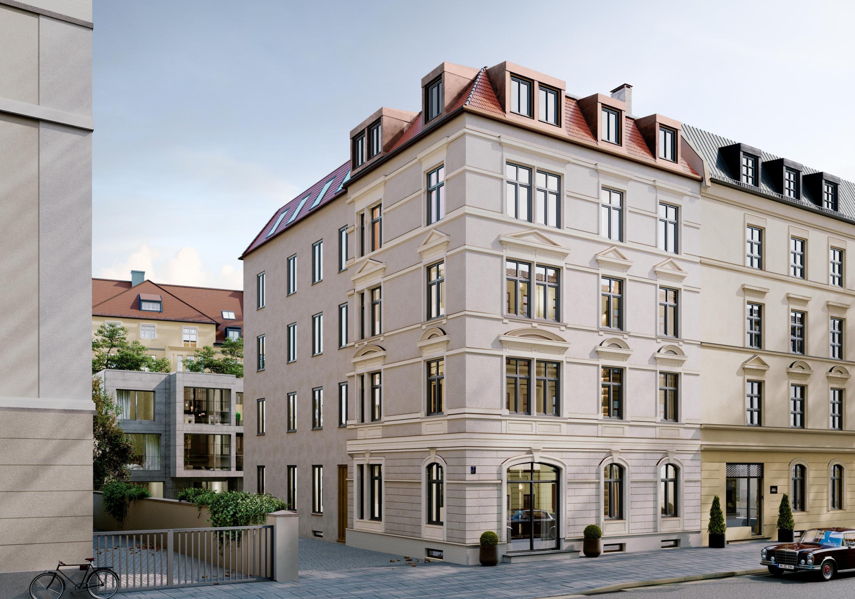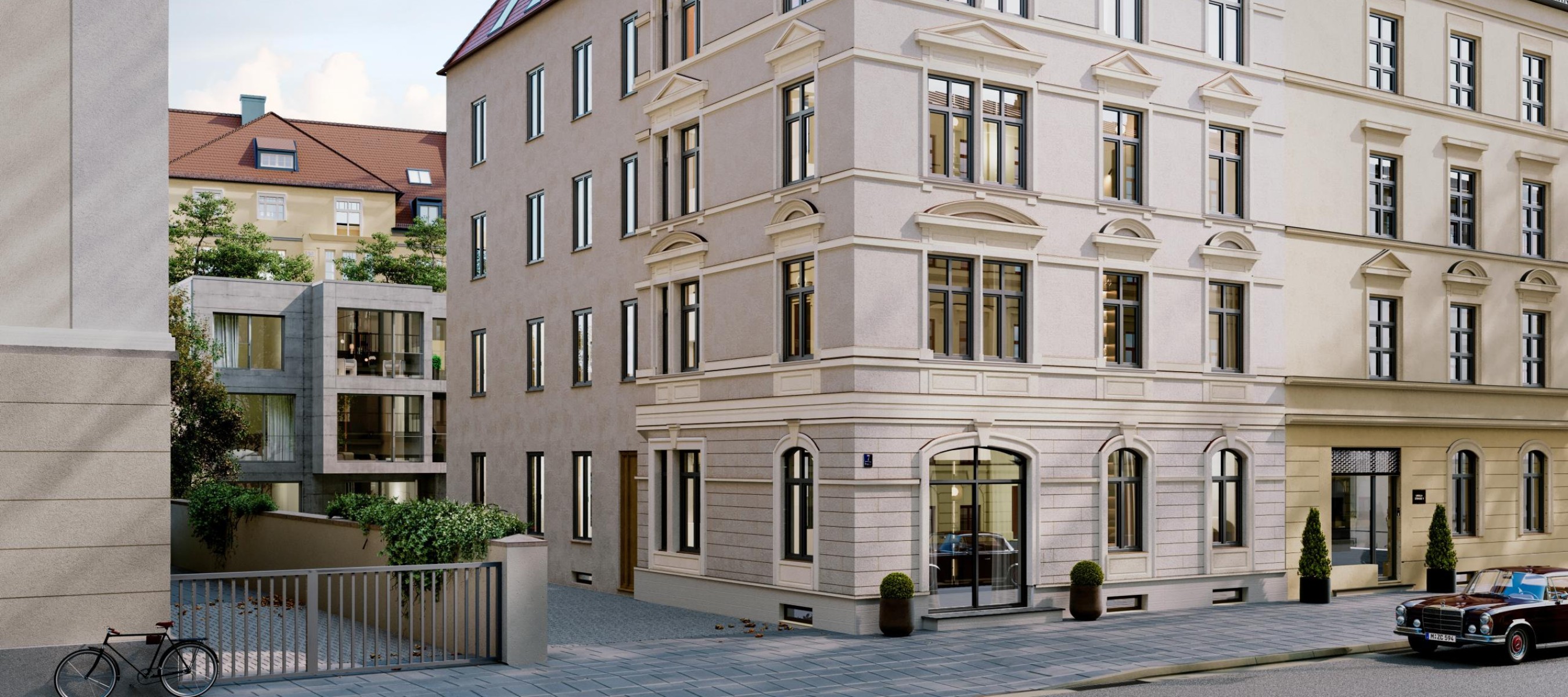 In Bestlage von Schwabing, nur wenige Schritte vom Englischen Garten entfernt, entsteht ein außergewöhnliches Bauvorhaben mit architektonischer Tiefe: ein hochwertig saniertes Vorderhaus mit historischer Fassade und sechs individuell gestalteten Wohnungen sowie ein moderner Neubau im Innenhof mit vier weiteren Einheiten.